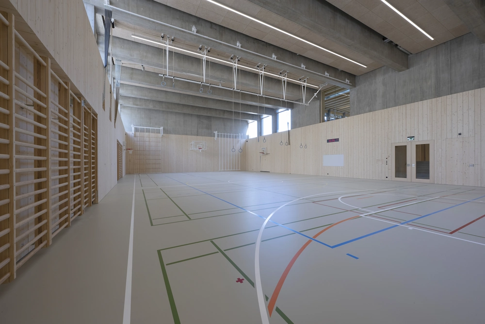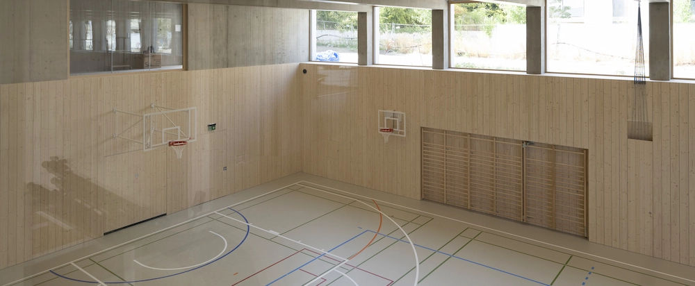 L’établissement scolaire dispose maintenant d’un gymnase moderne et fonctionnel, entièrement réalisé selon les standards les plus élevés. Les surfaces intérieures offrent un cadre de travail agréable pour les utilisateurs, avec une atmosphère naturelle et accueillante. Ce projet illustre notre capacité à mener à bien des constructions complexes en bois, du plus petit détail à la structure générale.