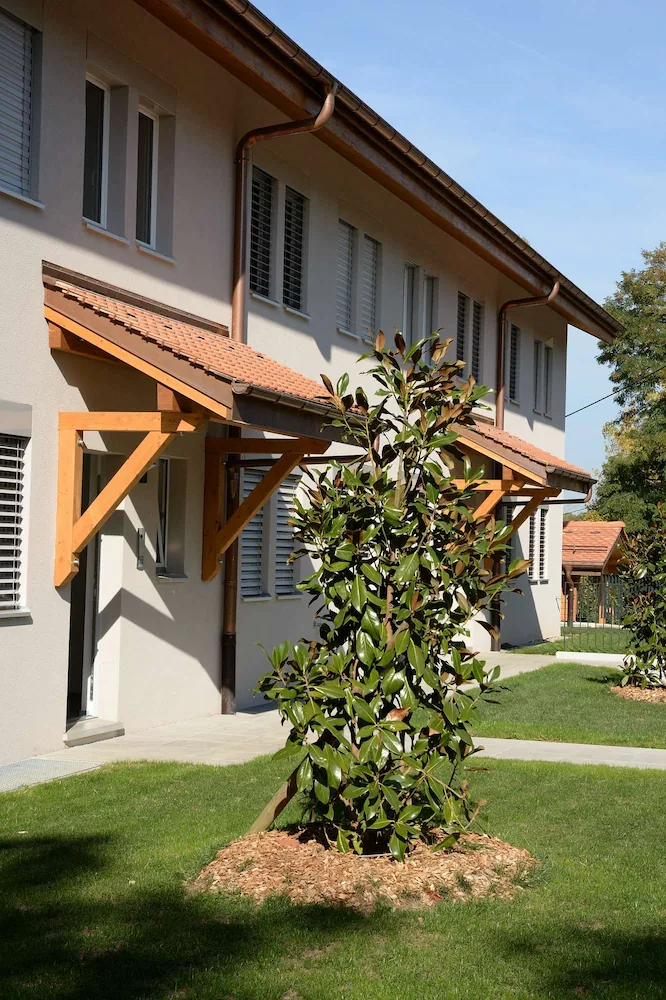 Pour cette promotion de logements située dans le canton de Genève, Maison Biedermann a été mandatée pour réaliser l’ensemble de la charpente et de la toiture, depuis la structure porteuse jusqu’aux finitions visibles. L’objectif : créer une enveloppe performante et durable, tout en apportant une identité chaleureuse à ce bâtiment contemporain.
